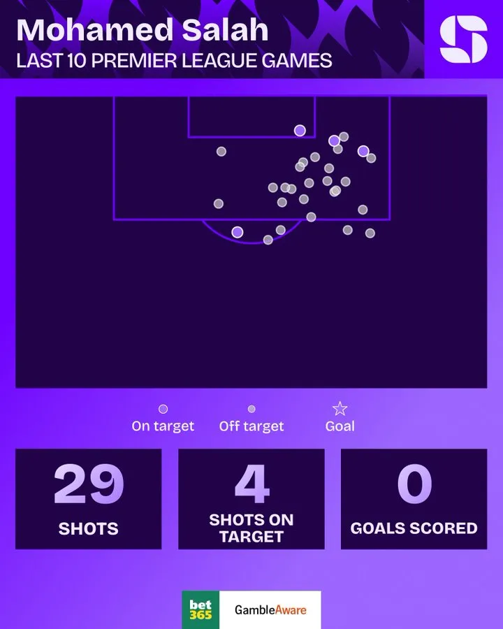 虎扑03月03日讯 Squawka统计了萨拉赫在最近10场英超联赛里的数据: