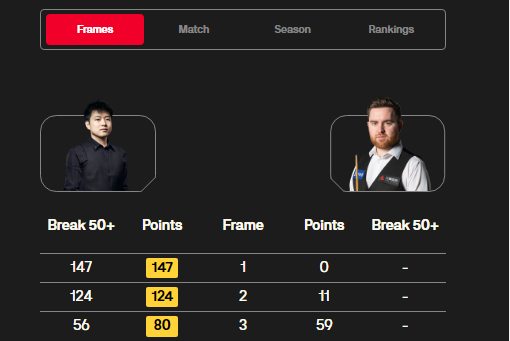 接下来,赵心童、吴宜泽、肖国栋滚动到第六小组继续参赛。他们上演不可思议的单杆满分147分接力战。先是肖国栋轰出满分杆,接下来是吴宜泽、再下来是赵心童。